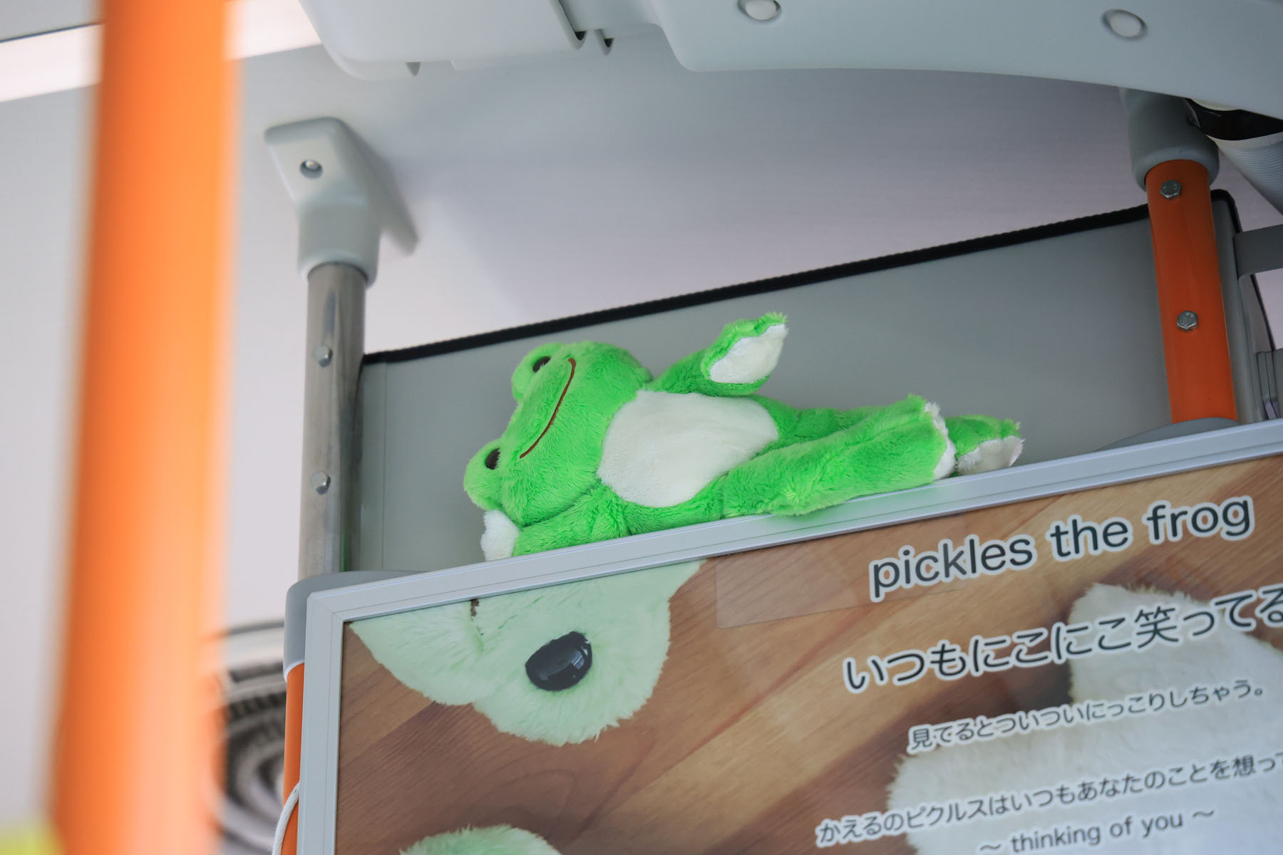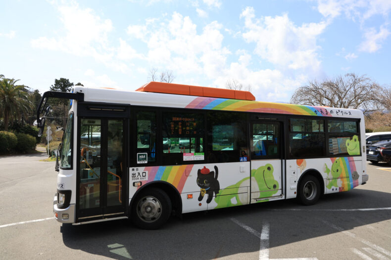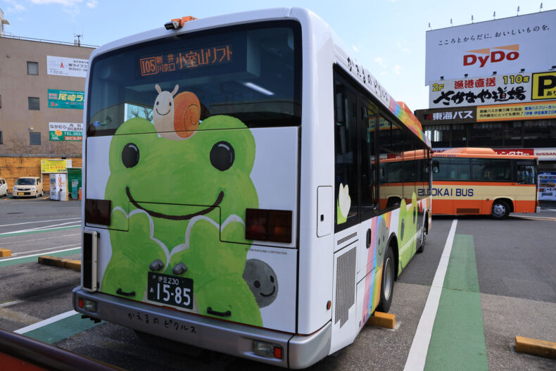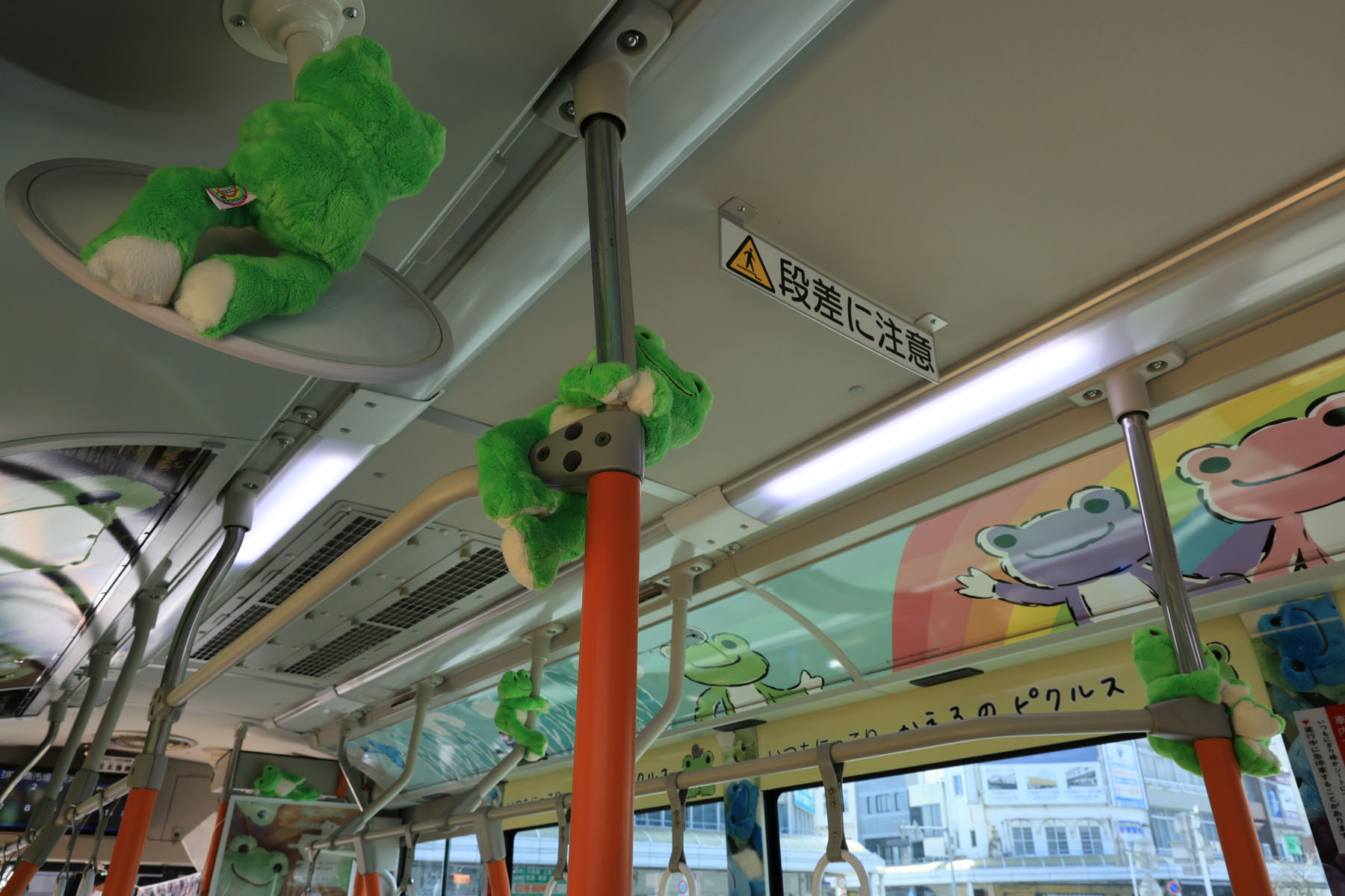 伊東方面で運行されている「かえるのピクルスラッピングバス」に乗ってきました。昨年秋から運行していたのですが、なかなか「天気のいい日」と「自分のフリーな休日」がリンクする日がなく、今になってしまいました。