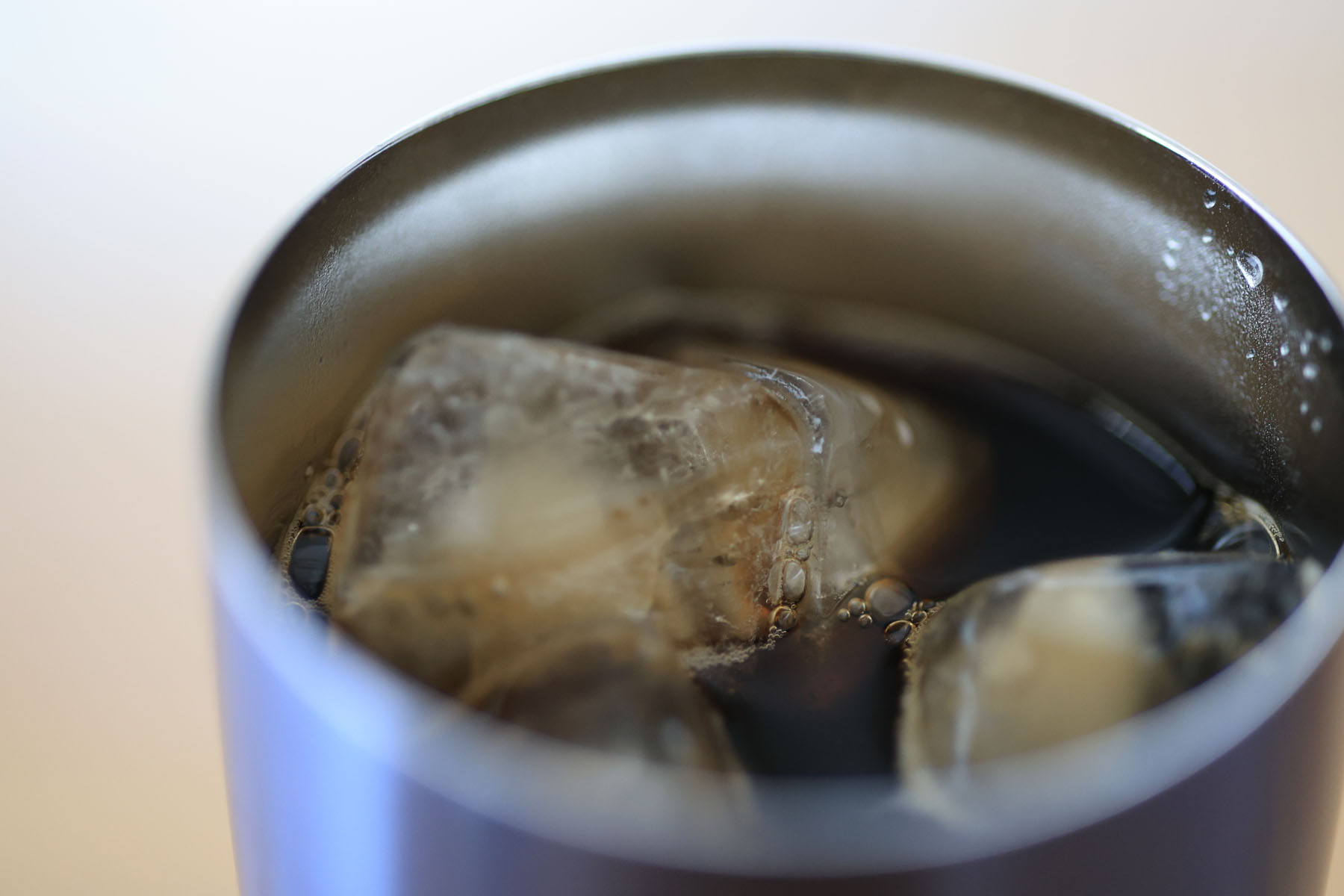 1時間経過後(1口飲みました。)氷があまり溶けていないですね。このあと5時間くらい経っても氷は半分以上残っていました。恐るべし保温性能です。