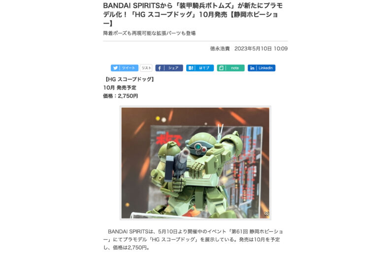 個人的にはずっと1/20スコープドックが再販されるのを待ちつつ、2倍以上の価格で売られている中古品を指をくわえながら眺めていたのですが、こういう流れでは1/20の再販は難しいですかね。