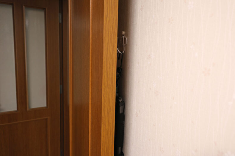 ドアを開けたときにはこんな感じになります。ギリぶつかっていません。いい感じです。長年の懸案が片付いてスッキリしました。