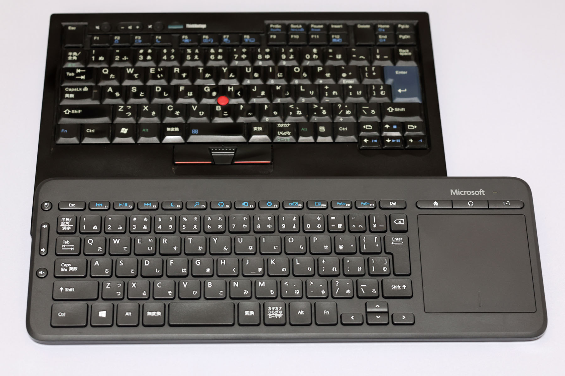 以前はLenovoのトラベルキーボードを使っており、これもポインティングデバイス内蔵なので便利なのは確かだったのですが、いかんせんUSB接続なのでいちいちテレビの裏においてあるミニPCに接続するのは骨が折れます。よって、ワイヤレス化したいなぁとは思っていたのですが、Lenovoのワイヤレスキーボードは結構いい値段がするので、使用頻度を考えるとその1/3で買えるこのマイクロソフトのでいいやと。トラックポイントと違ってジェスチャ操作が使えるのもグッド。
