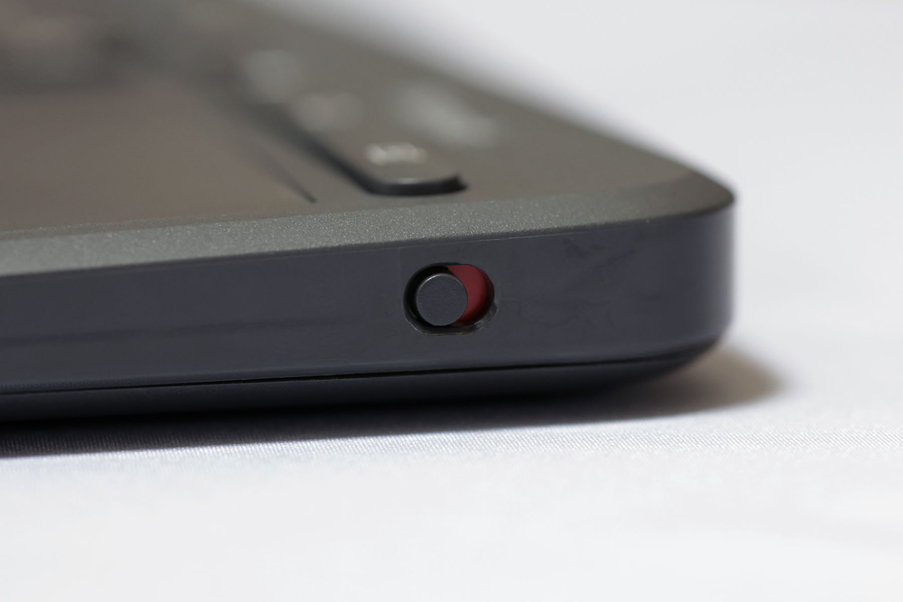 右側面に電源スイッチがあります。これ先日買ったLogicoolのマウスも同じだったんですけど、「赤」が電源オフで、「緑」が電源ONなんですよね。私の感覚では逆(赤が電源ON)なんですけど、マイクロソフトもロジクールも同じってことは、最近ISOかなんかで決まったんですかこれ?