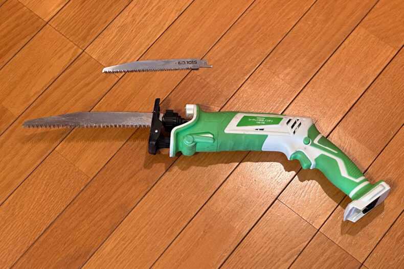 先日ダメ出しをした山善のコードレス剪定のこぎりですが、歯を替えたら化けました。えらい切れ味です。ダメだったのは本体ではなくて歯か…。