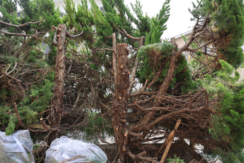 現在、90Lのビニール袋換算で20袋くらい詰めて、そのうち9袋を3回に分けで燃えるゴミに出しました。全伐採工程の4割くらいは進んだかな?というところなので、最終的には90Lのゴミ袋×50袋くらいにはなりそうです。