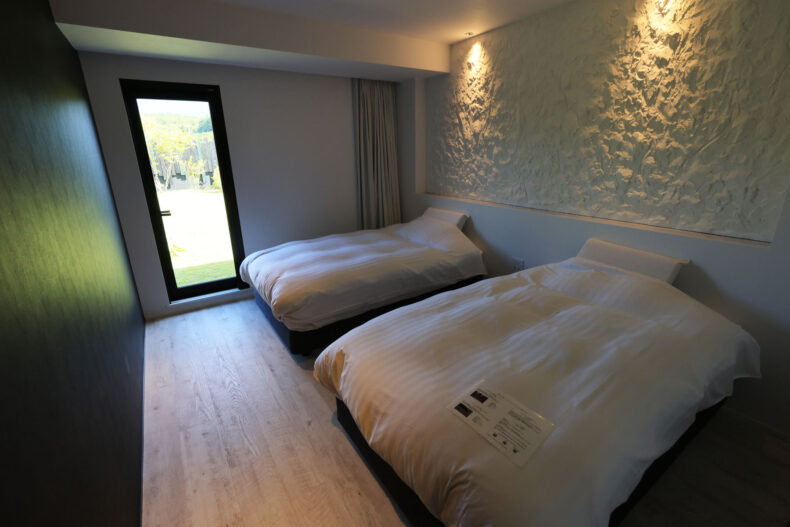類似の施設に「グランピング」というのがありますが、それよりはホテル寄りの宿です。しっかりした部屋でゆっくり寝られます。ご飯は自分で作る必要はありますが、皿洗いの必要はありません。こちらはごく最近できたばかりの宿ですが、隣に2年前に先行オープンした「abrAsus Hotel」(アブラサス・ホテル)が建っています。Hotelの方もチラ見させてもらいましたが両者とも機能的にはさほど差はなく、基本的にテイストの違いといってよいでしょう。上の写真だと左側の塀の向こうに写っているのが「Hotel」の方です。