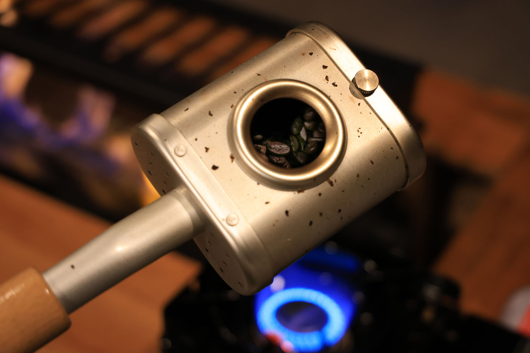 食事の後の大事なアクティビティが1つあります。コーヒー豆焙煎です。翌朝美味しいコーヒーを飲むために、豆を焙煎します。15分くらい涼しい屋外で豆を振ります。