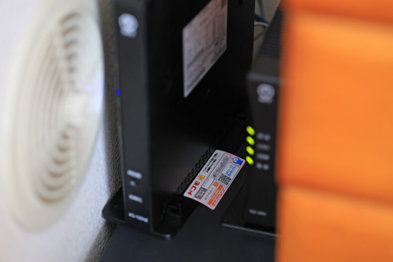 さて、工事前にドコモから工事の最終確認のお手紙が届きまして、その中に「これをルーターに貼るが良い」と示されたサポート用のQRコードシールが同封されていまして、早速貼ってみたんですがルーターの発熱で貼り付かず落ちてしまいます(;´Д`)。これちゃんと貼り付くか確認してないだろNTT…。一応115に電話して「サポートに案内されるQRコード付きのシールはいい方策だとは思うんですが、くっつきませんよ」と言っておきました。まぁ私はこのシールがなくても困りませんが、私が長期で家を空けているときに家族の役に立つことがあるかなぁと思いまして。