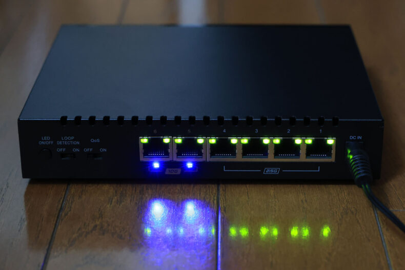 Planexのこれなんか、全ポート2.5G対応で10Gタイプの1/3以下の価格で、なかなかいい感じ。でもAmazonプライム期間中は売り切れていました。ただ、間違いなく10G移行時には買い換えになる繋ぎのための機械だし、でもこのお値段ならつなぎとしては悪くないか…とも思ったのですが、自宅用としては前面接続というのがちょっと使いにくいかなぁ…と感じました。
