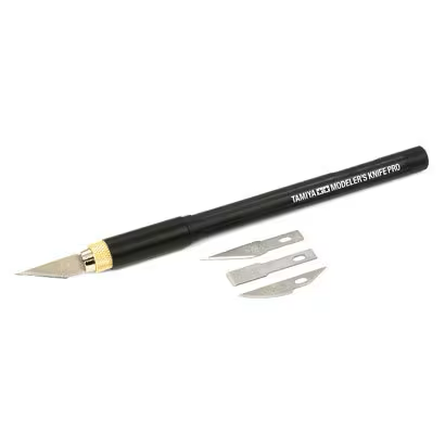 プラモデル本体用はこの74040です。値段はいくらも変わりませんが、スタンダードなタイプです。ホルダーは樹脂っぽいですが、かなり奥まで差し込むようで、長さで刃のズレを抑えているようです。