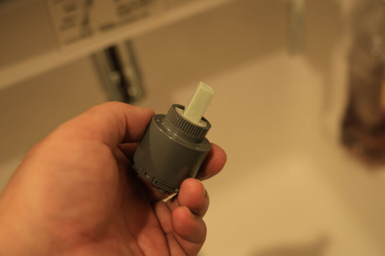 洗面台の蛇口レバーがガタついてきたので、カートリッジを交換しました。家族4人で酷使して9年目ですからそんなものでしょうか。機能不全ではないので気にしなければ使えるレベルですが。