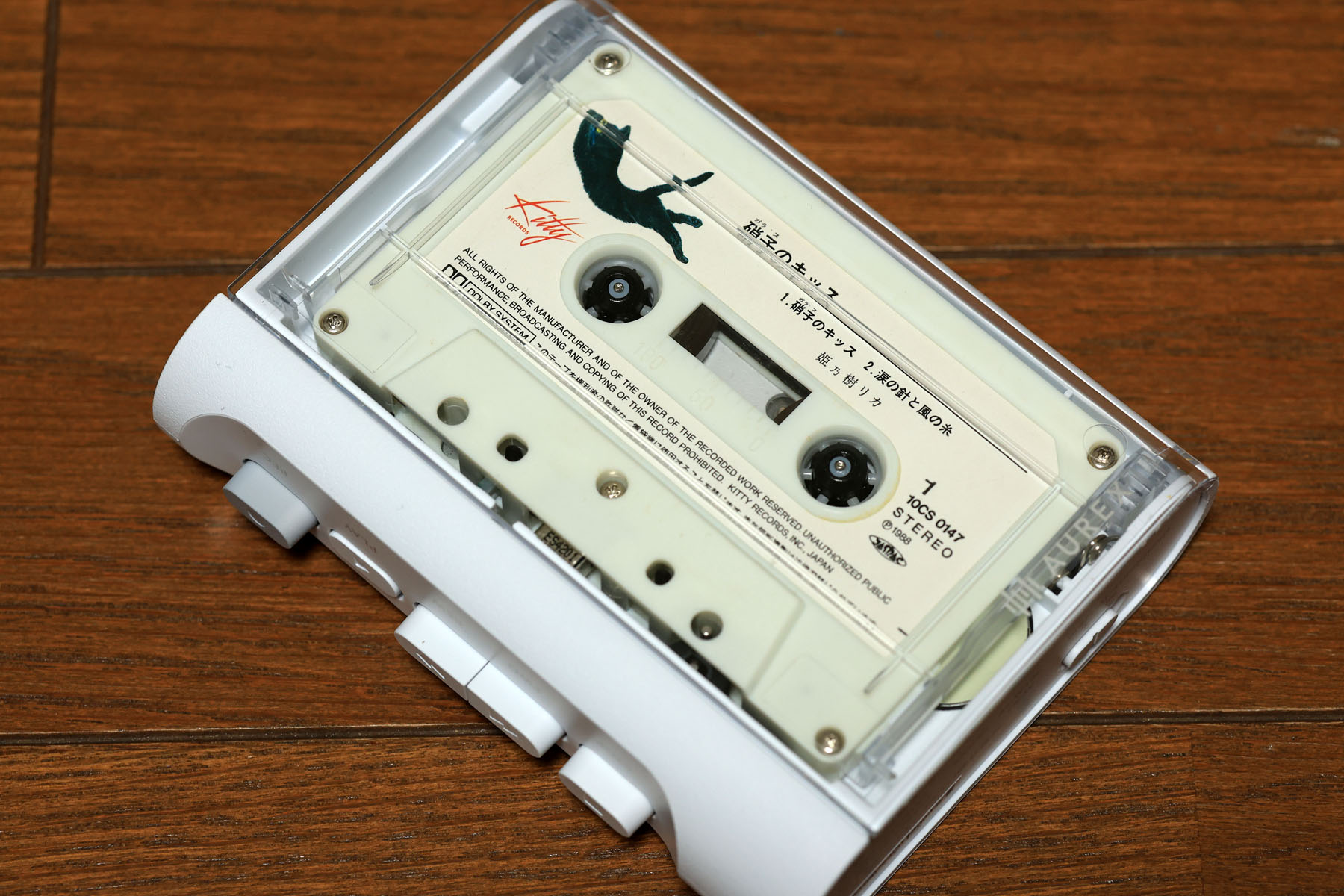 しかしこの透明なカセットハーフとの組み合わせで見るテープの動きはエモすぎますね。これは若者にウケそうです。そして聴いたあとの巻き戻し操作、面倒くさすぎ。