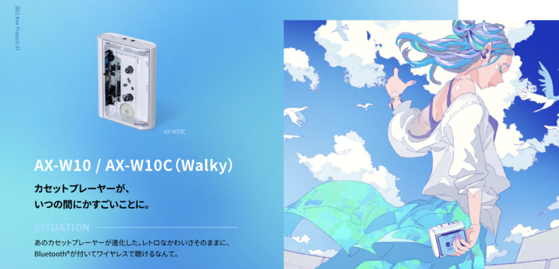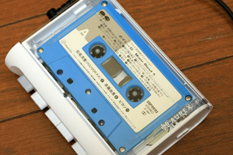 水星の魔女サントラのカセットテープ版を入手した前後に、東芝が新発売したカセットプレイヤーの出来が良いらしいという噂を聞きつけ、買ってみました。東芝 AUREX Walky AX-W10C です。AUREX とか Walky とか、昭和のブランド大爆発ですね。