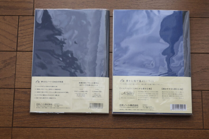 先日、息子の送迎でちょっと多摩の方のホームセンターで時間を潰す場面があり、ふらついていたらノートが目に留まりまして、「ああそうそう、少し小ぶりのノートが欲しかったんだ」ということを思い出し、買いました。下の写真の左のものです。「紳士なノートONE」というもので、ちょっとお高いノートです。(そういえば一昨日のエントリも、薄い形状の ”何とかONE” だった気がする…)