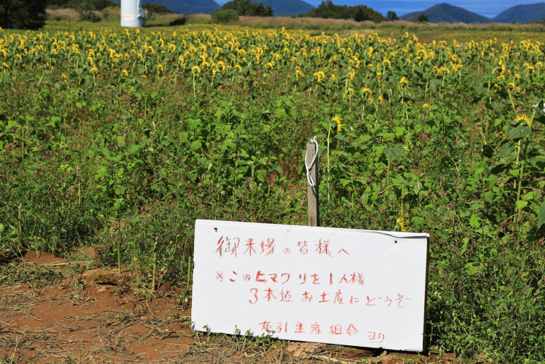 猪苗代湖近辺の空気はいいですね。ご飯も(お酒も)美味しいし、関東から遠征する人が多いのも頷けます。ちょっと出遅れてヒマワリは若干しおれかかっていたのですが、ヒマワリが終わるとコスモス畑になるらしいですね。