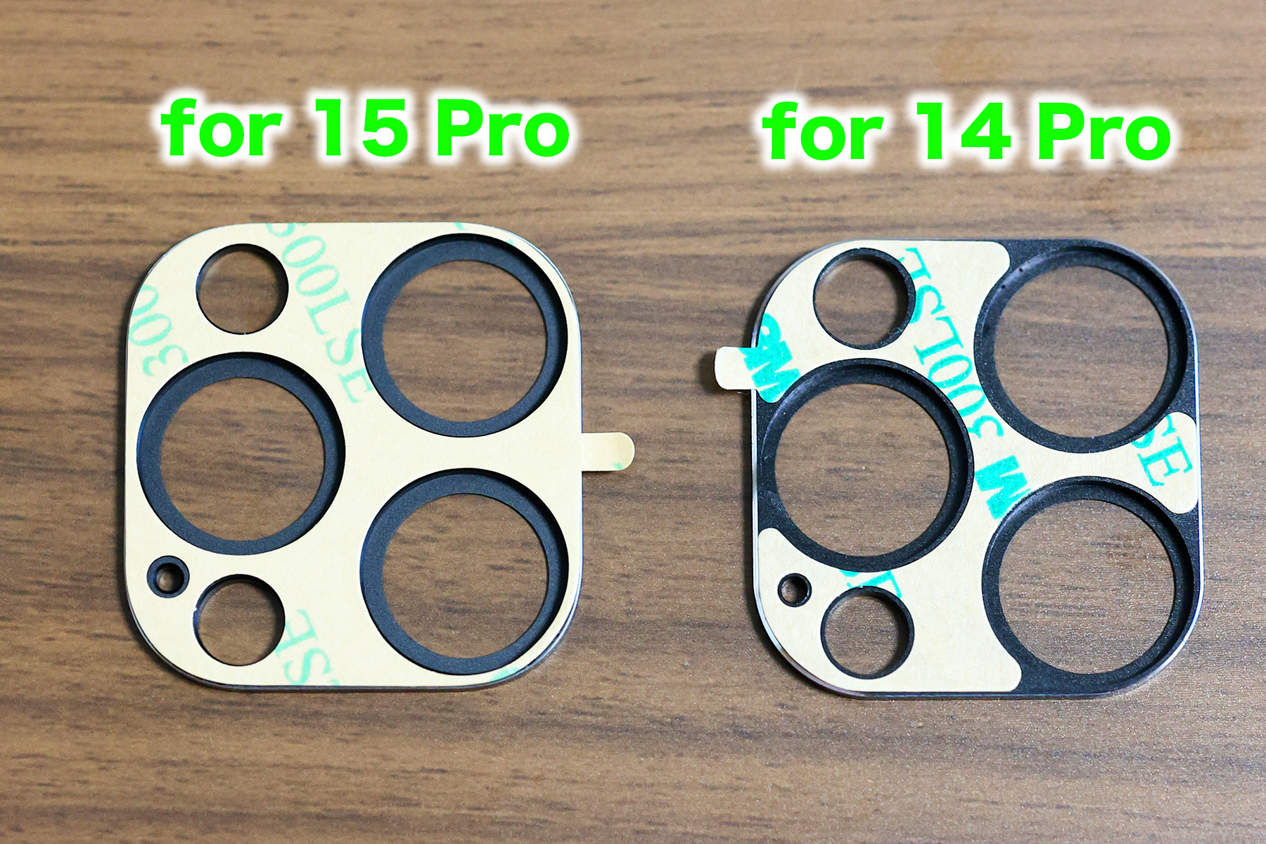 このプロテクタの製品パッケージは2枚入り。iPhone 14 Pro用が余っているので iPhone 15 Pro に流用できるのかな?、ちょっと寸法が違いました。流用不可です。(流用できるかな?と思いつつ 15 Pro 用も買ったのは、単なる勢いです。)