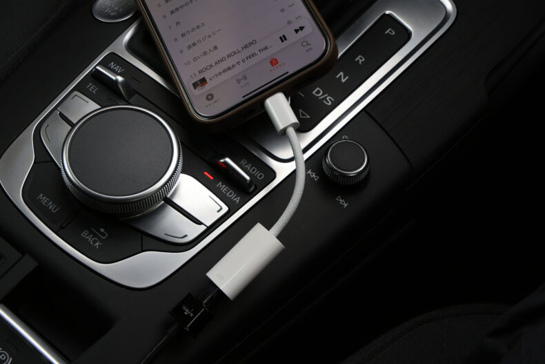 純正では Lightning 接続しか用意されていないAudi MMI (A3 MY2016)に、USB-C – Lightningアダプタ [MUQX3FE/A]で iPhone 15 Pro を接続してみました。