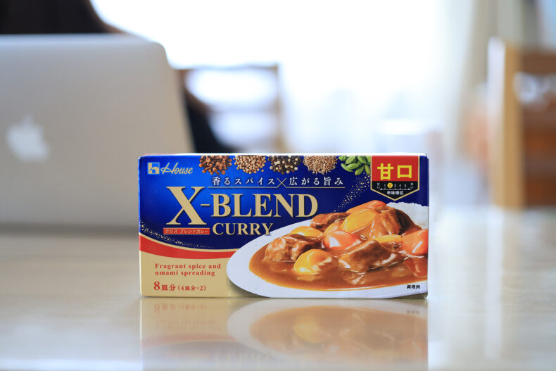 X-BLEND CURRYというのは、バーモントカレーを卒業した子供たちがちょっと背伸びするのに最適なカレーなのだそうで、バーモントカレー以上、ジャワカレー未満に位置するスパイシーなカレーです。おそらく、珈琲をブラックで飲むようになった子供たちあたりがターゲットなのでしょう。