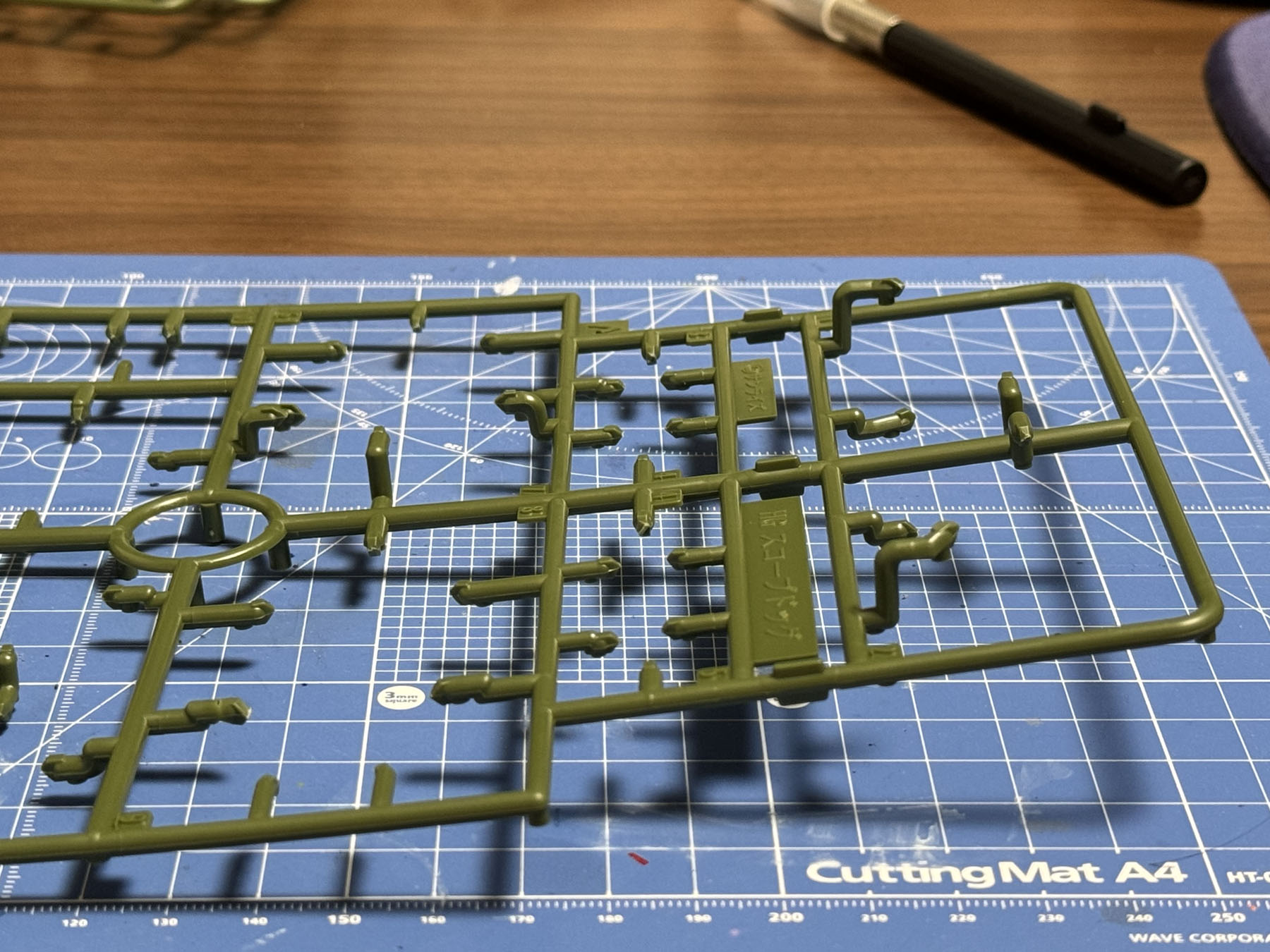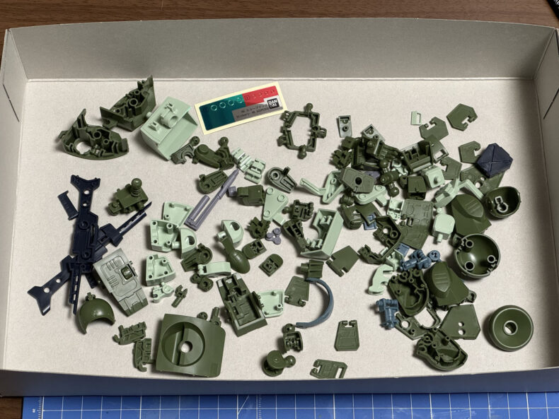 一方で、反っているランナーもありました。これも珍しい。なお素材はすべてPS(スチロール樹脂)でした。ABSもポリキャップも使用されていません。