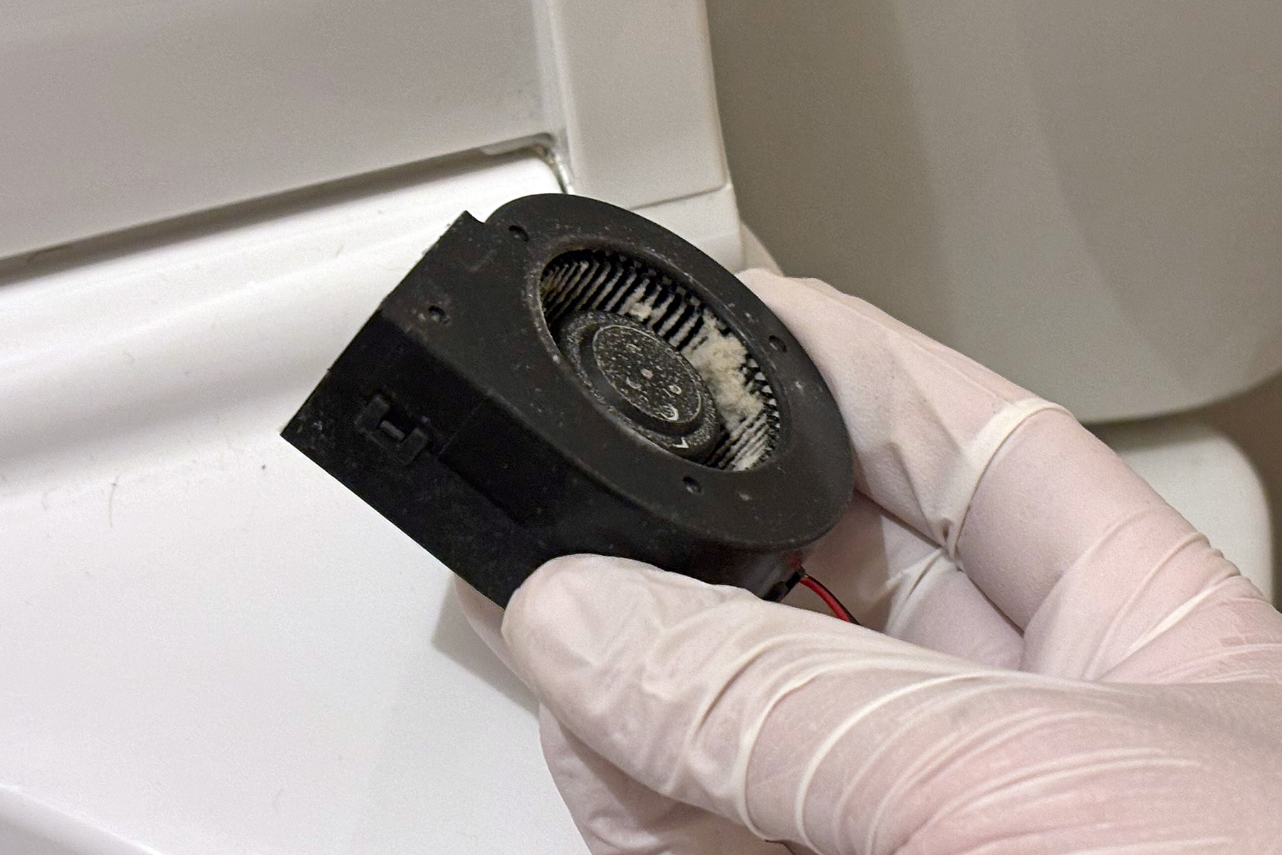 自宅のTOTOウォシュレット(2014年型アプリコット)が2台とも1年前に修理したのにまたオートパワー脱臭の動作時に異音を立てるようになってしまいまして、バラしてみました。
