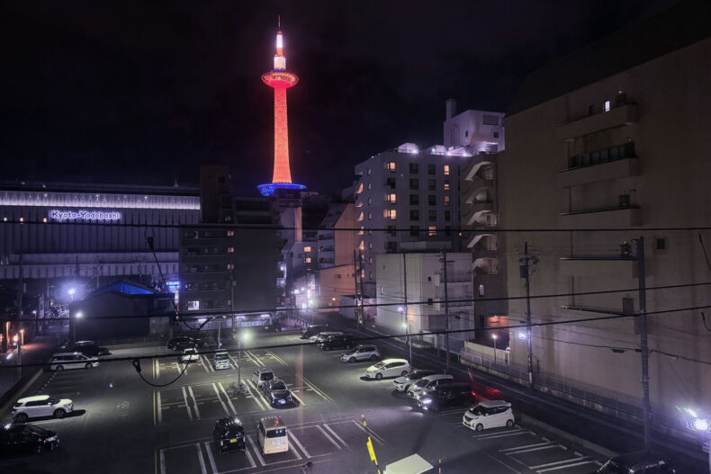 ちょっと寝るときにカーテン開けてみたんですが、この京都タワーが寝室の窓から見えるというのはなかなか不気味なものがあります(笑。