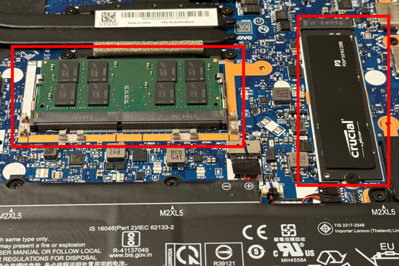 息子のThinkPad E14 Gen.2ですが、もうSSD(256GB)とかもパンパン(残り3GBとか)、メモリも8GBと、Unreal EngineもBlender も起動こそすれどアセットのバージョンアップすらできない始末。大学に入る間の比較的自由な時間に Unreal Engine や Blender を弄りたいようで、でも先立つものがないため私が費用を出してRAMとSSDを増設しました。(以前は自分の小遣いでやれと言いましたが、まぁ大学の合格祝いの一部ということで財布の紐が緩みました。)