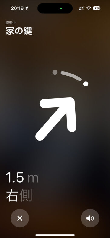 AirTagとは違う製品なので、iPhoneに登録する場合も「AirTagを追加」からは登録できず、「その他の持ち物を追加」から行います。また、UWB通信には非対応なので、AirTagのように近接した場合にピンポイントで場所を示してくれる機能(上右の黒い画面)は使えません。