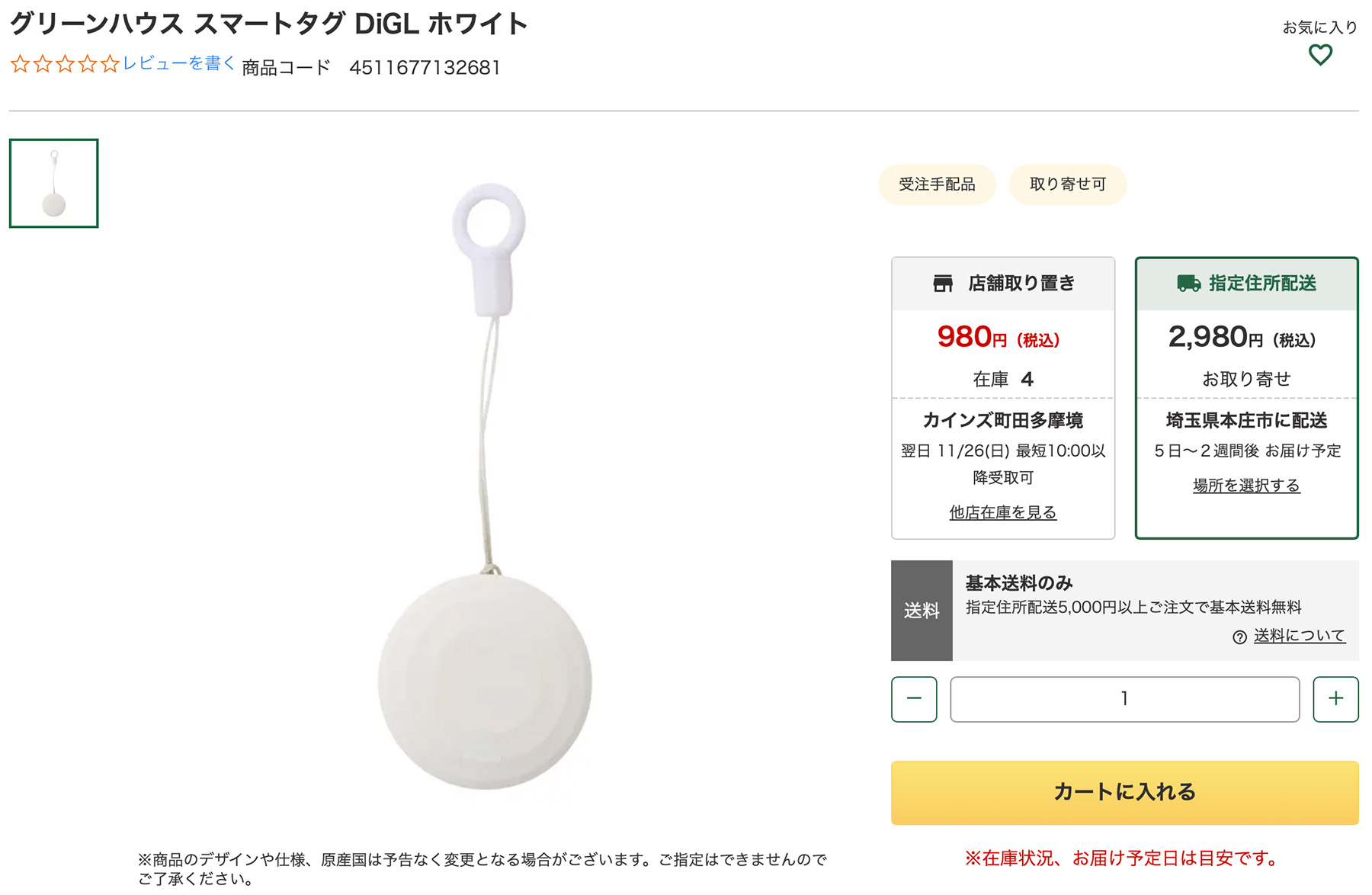 GREEN HOUSEのAirTag互換タグDiGLが、カインズで980円(定価2,980円、Amazonのブラックフライデーセールで1,980円)というのを某SNSで聞きまして、速攻2個捕獲してきました。CYOさんありがとうございます。