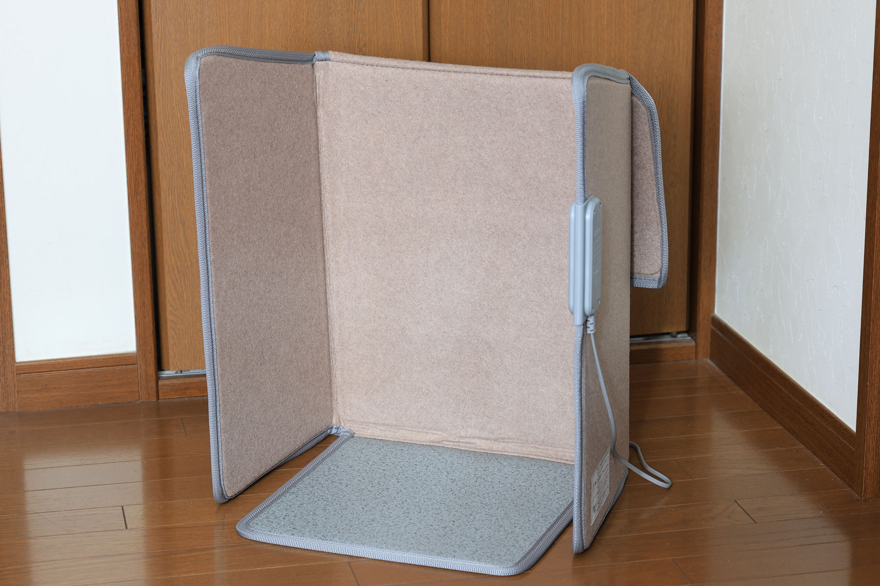 この形状を利用してコタツに入っているときに背中側を温めるのにも使えます。妻に使用感を聞いてみましたが、かなり温かいようです。これでこの冬は節電しながら快適な在宅勤務ができるといいのですが。
