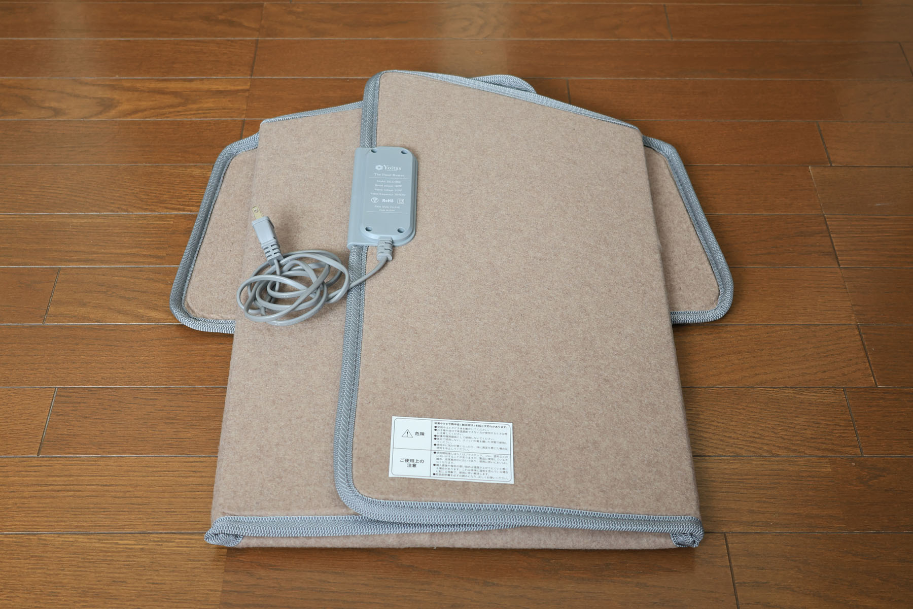 そんなとき電気屋Walkerのひまちゃんが「パネルヒーターめちゃいい」と絶賛している投稿をSNSで見かけまして、お値段も手頃だったことから私も釣られて購入。ひまちゃんが買ったのと同モデルではないのですが、「日本語ローカライズがしっかりしていること」「設定しなくてもデフォルトでタイマーが働く」「上面にフタができる」「平たく折りたためる」という条件で、Yoitasという会社の製品を買いました。