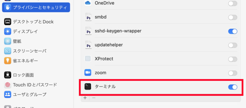 ところで最近のmacOSでは、この手の操作をターミナルで行うとはねられてしまうのですが、