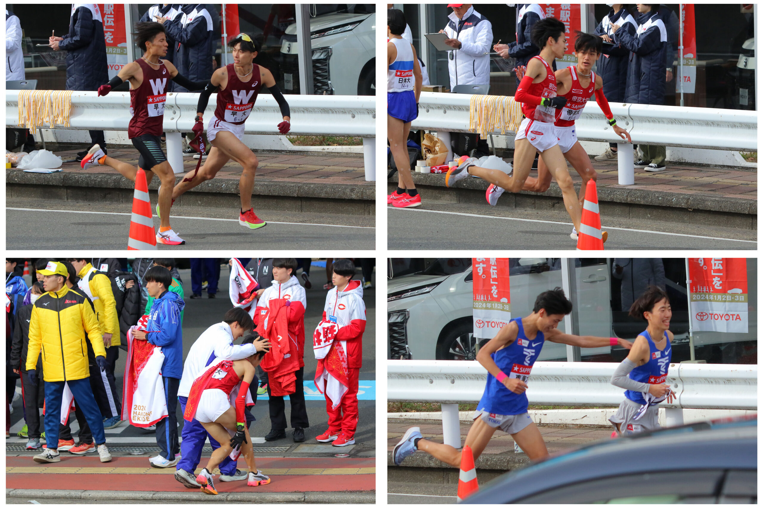 なんか私が撮った写真が急激につまらなく見えるくらい、感動的なカットが量産されてるんですけど…。やっぱり力を使い果たした選手と、力に満ちあふれた選手がバトンを繋ぐ場面は素晴らしいですね…。結構感動しました。反対車線なので所々車が被ってますけど、選手と同じ側の写真ではこういうカットは撮れないのでこれはこれで貴重。現地にどうやって近づくかという問題はありますが、私も戸塚中継所で観たくなってしまいました。