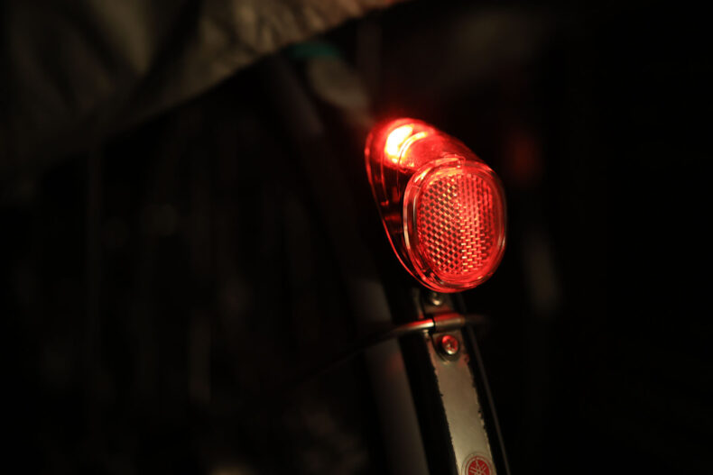 ネジ穴(ダボ込み)は YAMAHA PAS と 互換性があったので一応、取り付けられました。ただ、ちょっと工程には難があって、裏からのボルト締めを容易にするために泥よけのステーを外したのですが、このランプを付けてしまうとステーを保持する2本のネジのうち1本がドライバーが入らず締められないことが判明。ラジオペンチなどでムリクリ回して何とかしました。