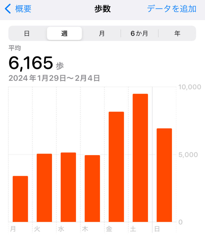 主治医から「運動量が足りない」と言われ、iPhoneの「フィットネス」の目標値を160kcal(身長と体重からiPhoneが割り出した「軽め」の設定)から、300kcal(同、「ふつう」の設定)に変更しました。その結果、目標歩数は約3,000歩(16分)から約5,700歩(30分)へアップ。とはいえ毎日のこととなると歩く行為単独では時間が勿体ないので、買物とかに絡めることとなります。すると都合良く5,700歩とかの地点にお店があるわけではありませんので、どうしても8,000〜9,000歩とかは歩いてしまうことになります。
