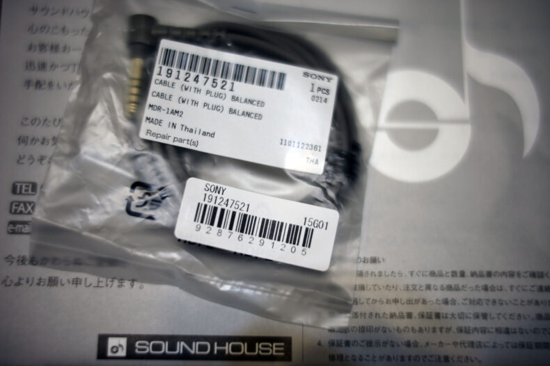 そういえば手元のMDR-1Aにバランス入力機能がありまして、これを活用したことがないな…というのを思い出し、まずはケーブルということでサービス部品扱いの「1-912-475-21 バランス接続ケーブル」を購入しました。