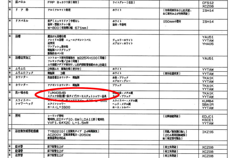 部品の調べ方ですが、まずリフォームしたときの図面から、水栓の型番を特定します。