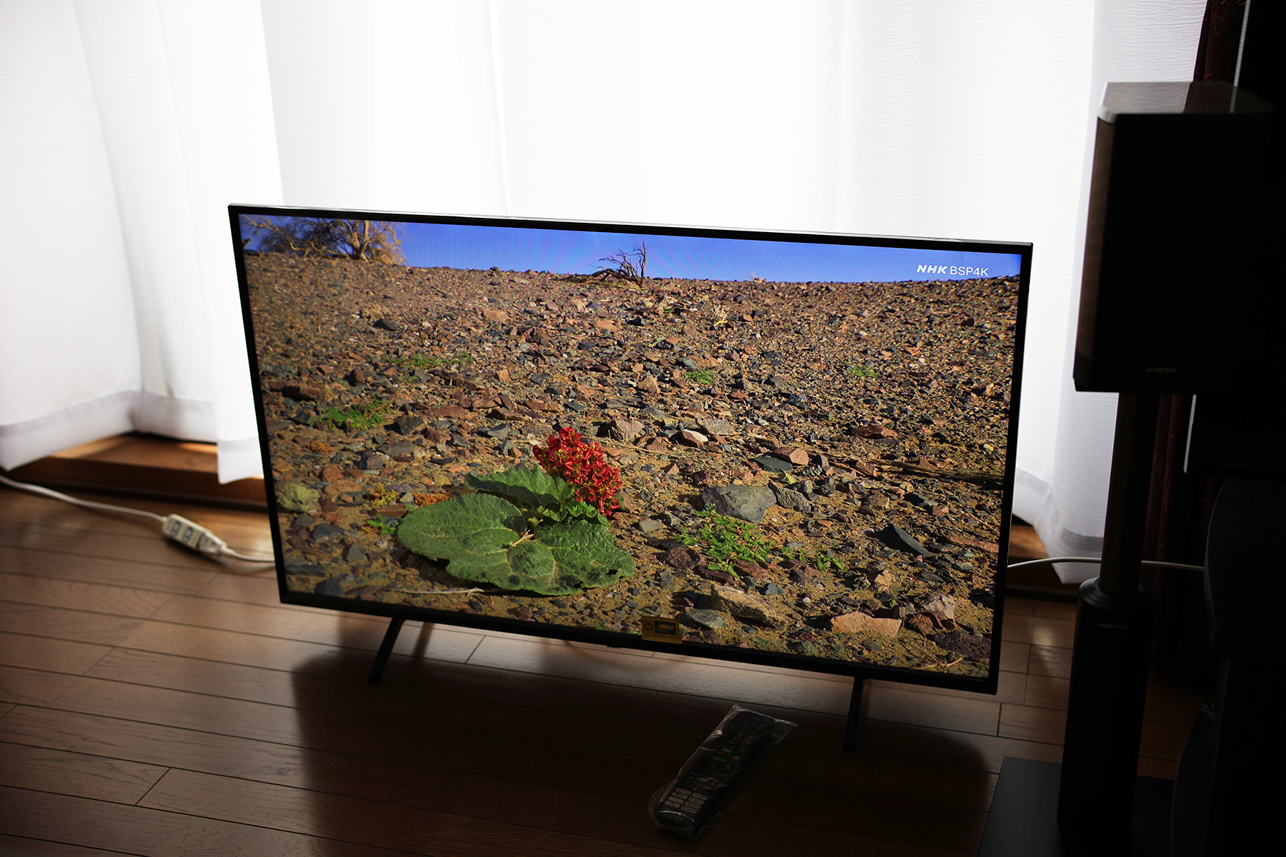 さて早速通電。さすが2014〜2015年モデルあたりと比較するとGUIは軽いし、VAパネルと言っても以前ほどの劣悪さはありません。妻にも見てもらいましたが画質的にはこれで充分だし、視野角も納得の範囲内とのこと。私はVAパネル特有の赤が朱色に、緑が黄緑になる表現に納得いきませんが、それより4Kの精細さで発色のプアさを打ち負かしてしまう感じです。