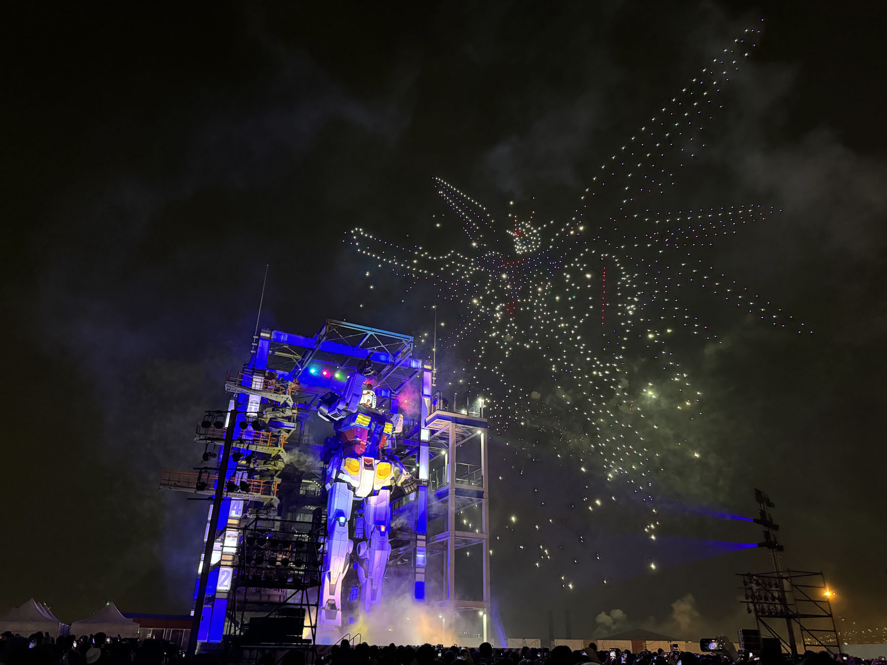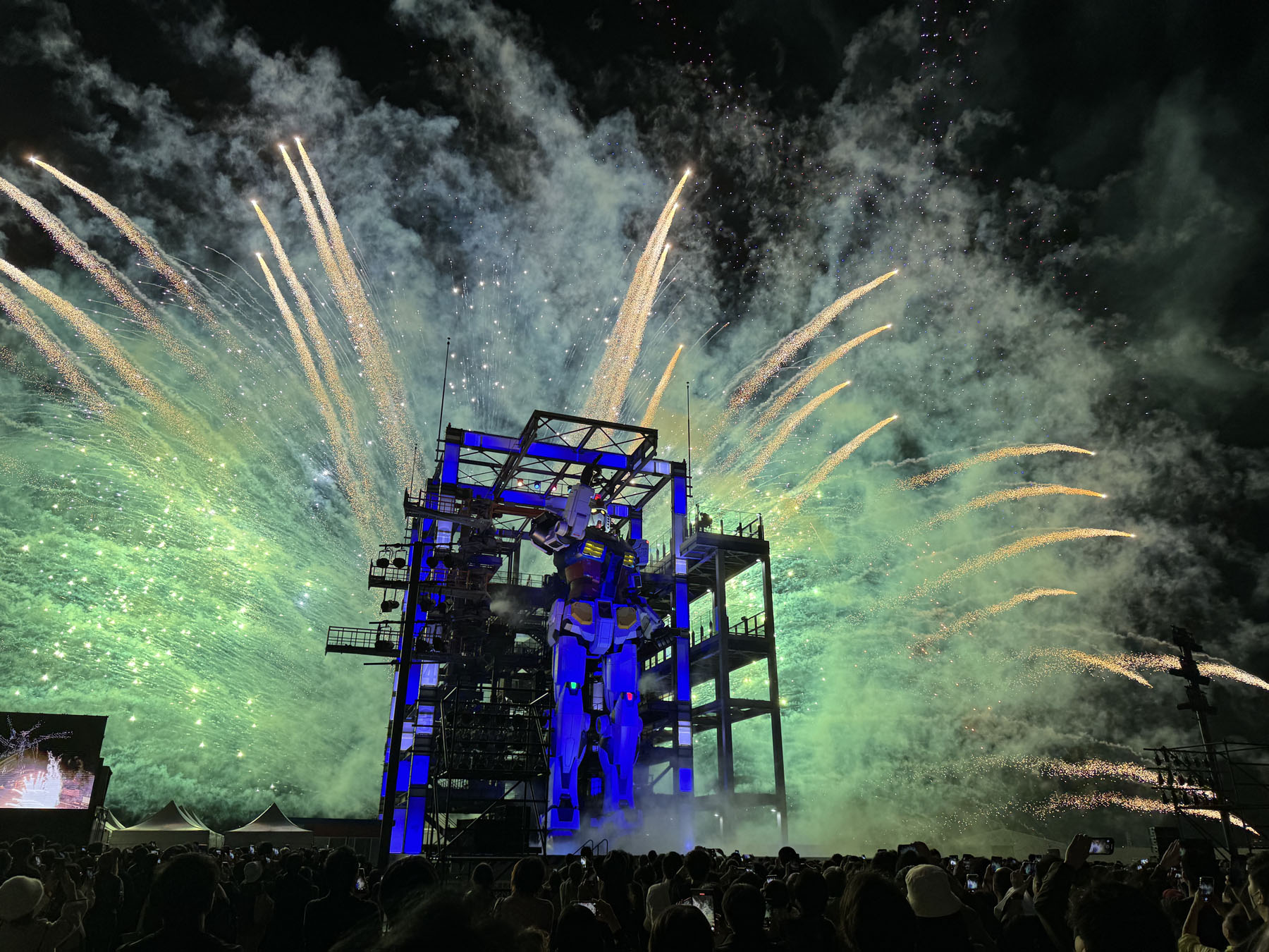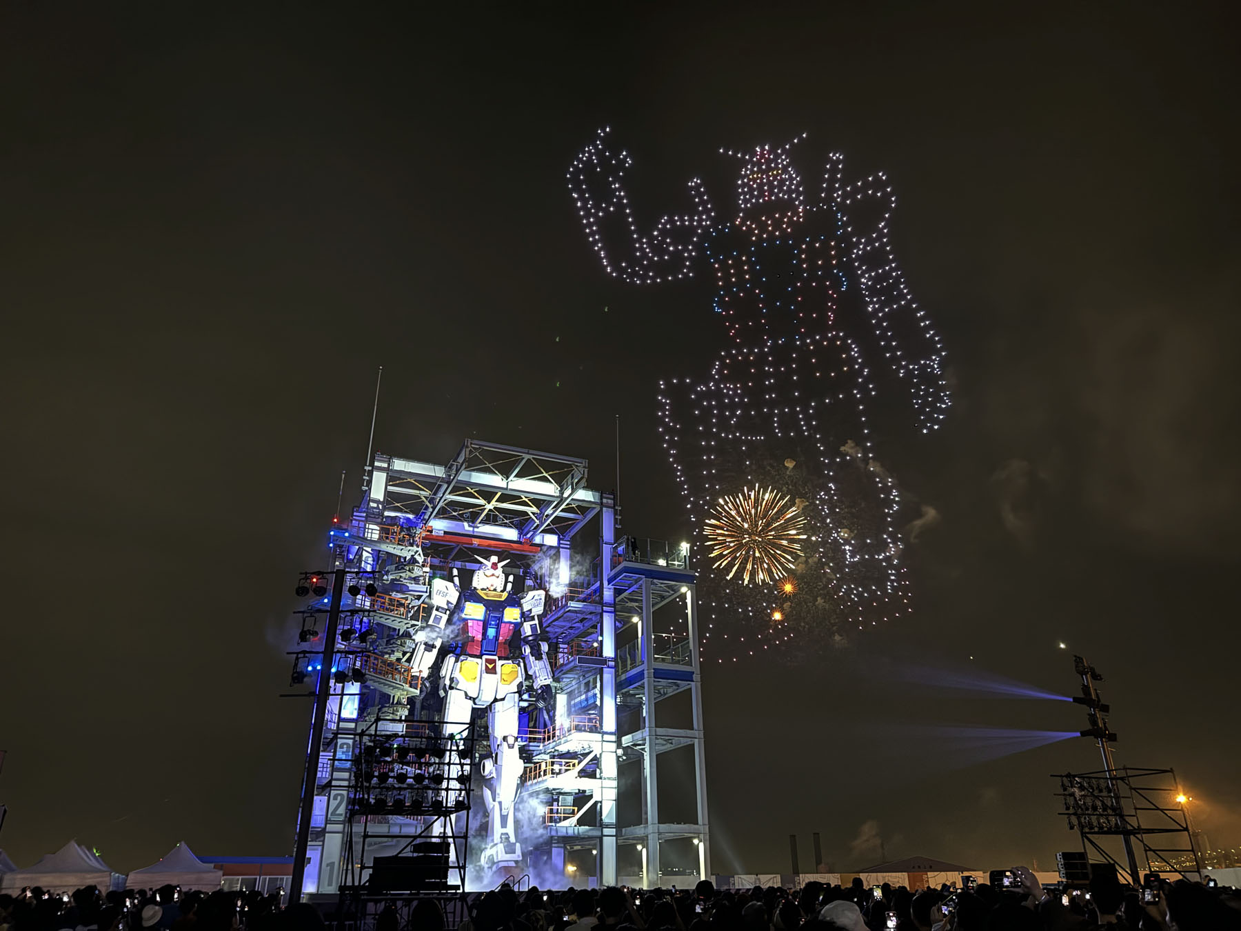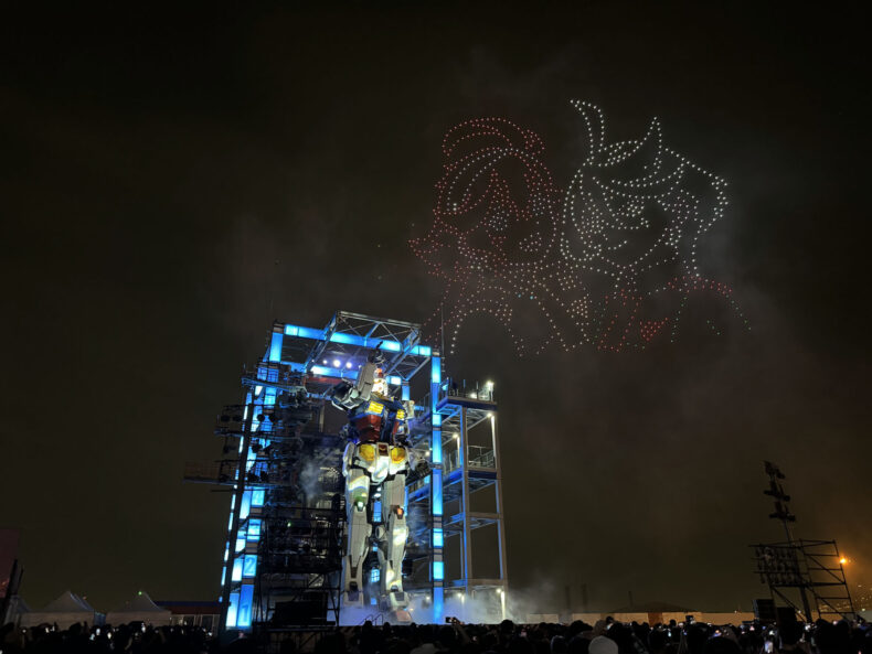 ドローンと花火と動くガンダムのコラボはなかなか幻想的でしたね…。