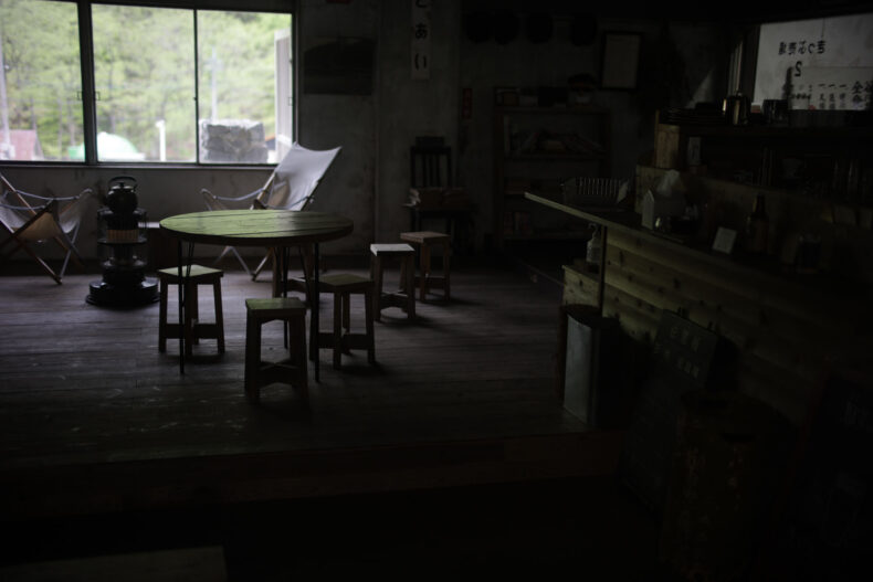駅の事務室には誰もいません。無人駅です。駅事務ではない用途に使われていた形跡がありました。(併設するグランピング施設の喫茶店として使われていたようです)