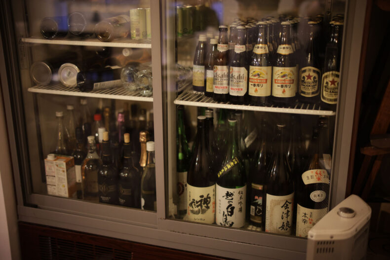 さて入店すると、たまたま酒冷蔵庫の前の席に案内されました。ラインナップを見ると…ありますね、会津娘。やはりその土地の料理はその土地のお酒で頂きたいところです。