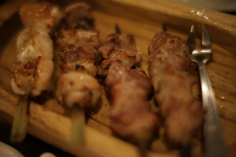 焼き鳥用フォークも供されて、「うちの店は焼き鳥を棒から外して食べることを想定していない」なんて押しつけがないのもいい。つくねに添えられている卵黄、むちゃくちゃ綺麗にカラザが除かれてるんですが、どうやってるんですかこれ…。