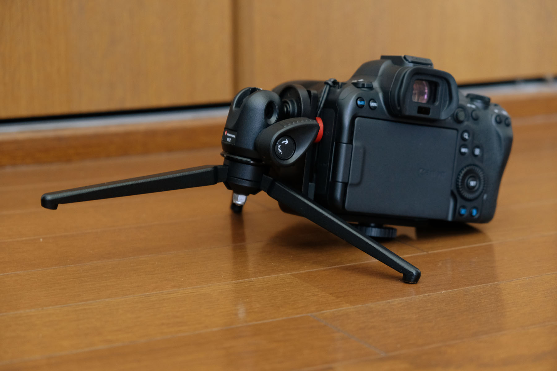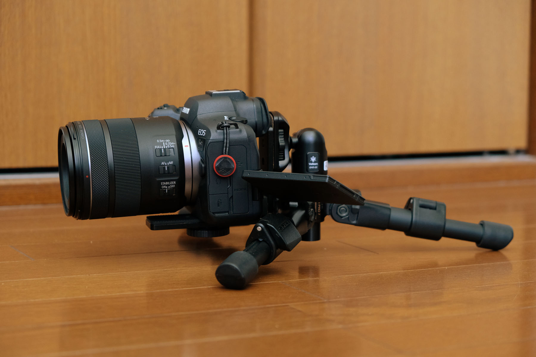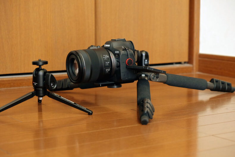 これをManfrotto雲台と組み合わせようとしたのですが、重心的にNG。レンズはブツ撮りでよく使うRF 85mm F2。