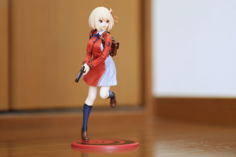 「スプリント MINI II 」との組み合わせで撮ったところ。フィギュアはガンプラの1/100スケールくらいで、高さ約20cm強。床上10cmくらいにアイポイントが来ます。やっぱりもう一息低くしたいかも…。そうするとL型ブラケットはVE-2180(E-2180)ではなく、より大型のE-6082(E-2181)の方が良かったのかも知れません。