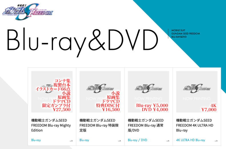 ガンダムSEED FREEDOM Blu-ray予約開始
