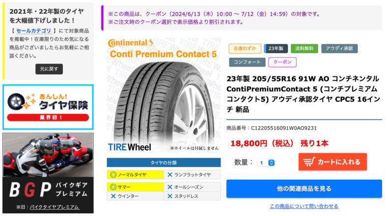 前回後輪は東北のAudiで今なら安いですよとオススメされたコンチネンタルの「ContiPremiumContact 5 AO」だったのですが、まったく不満がないどころかさすがAO(アウディ認定)だけあって、アウディの乗り味を損なわない完成度に満足していたので、今回も同じものをオーダー。