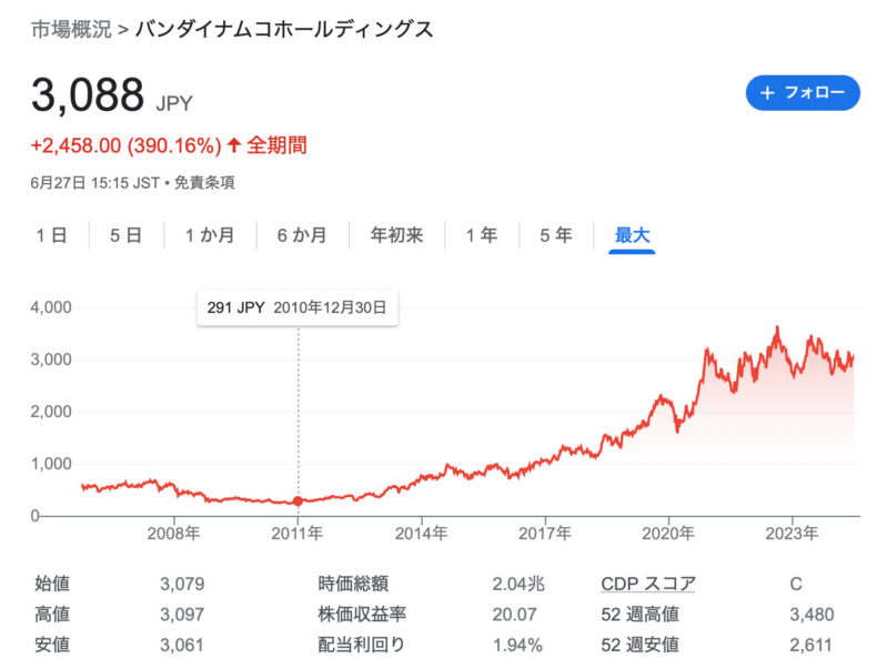 ただ、2011年のバンダイナムコ株を買う気が起きましたか?と言われると…その気持ちはなかったですね。