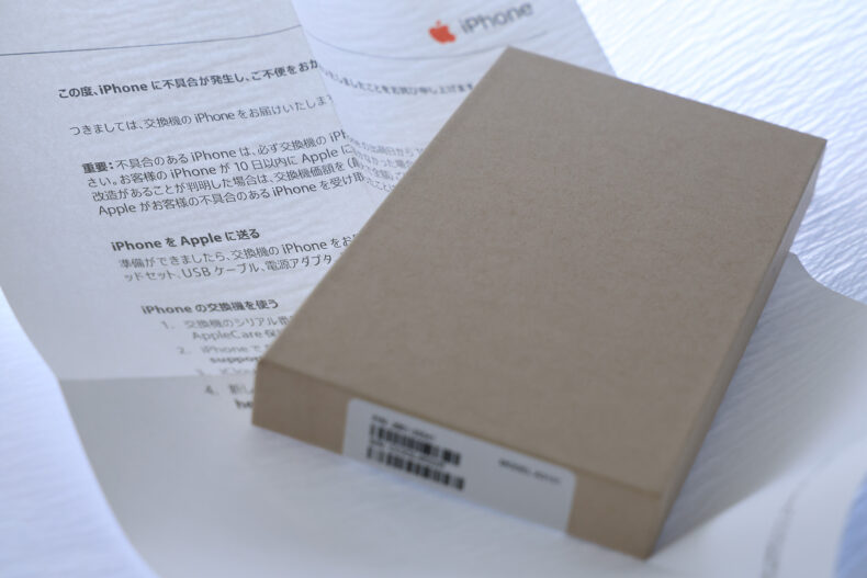 3xカメラにゴミが入った iPhone 15 Pro の交換機が届きました。Apple Care+による「エクスプレス交換サービス」です。交換機をその場で開封して取り出し、代わりに故障機を入れてその場でクロネコさんに渡しました。交換機に同封されていたお手紙には「交換機の発送から10日以内に故障機が到着しないと代金をカードから引き落とす」とあり、必ずしもその場で物々交換しなくても良いように読めます。しかしクロネコさんに二度来てもらう手間とか、回収用の伝票をどうするのかとかややこしい問題があるので、ユーザー側には若干不便を強いますが物々交換が間違いないかなと思います。