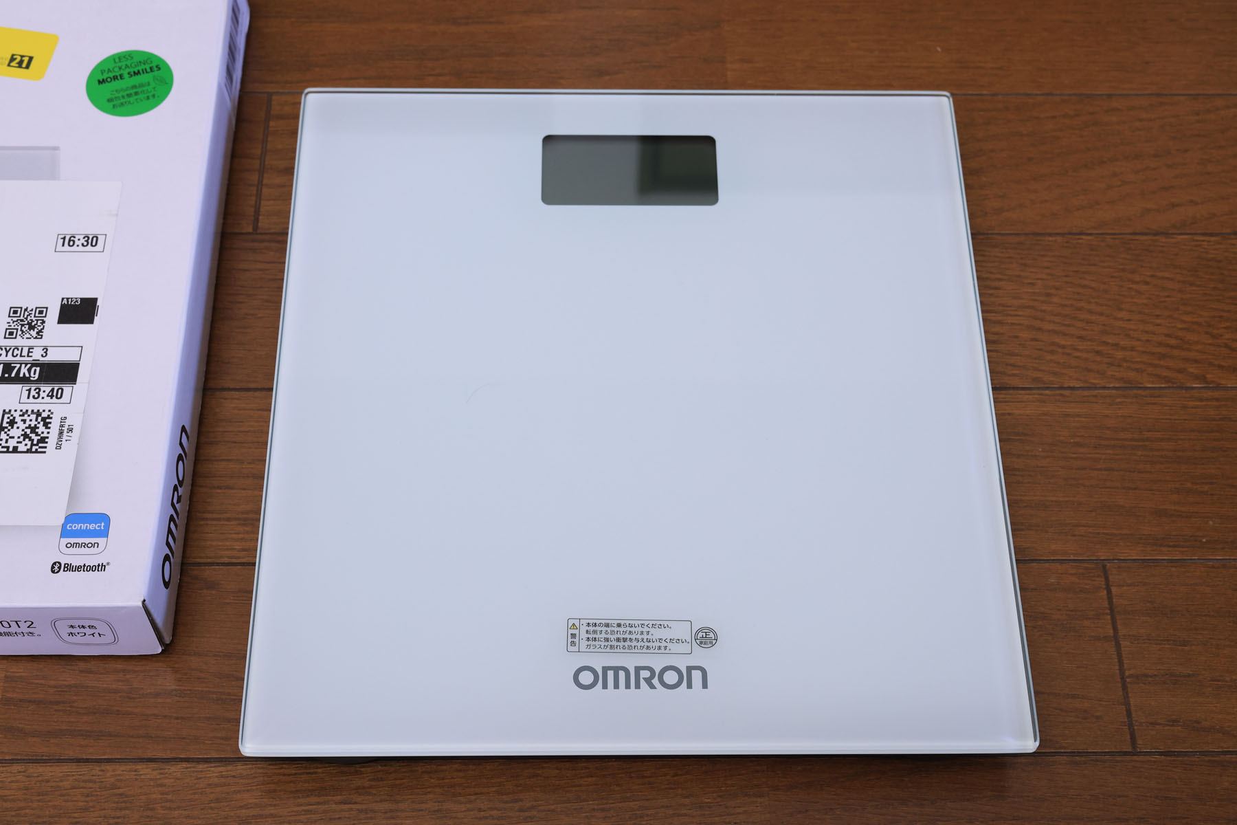 オムロンの測るだけでスマホにデータが自動転送される血圧計の使い勝手がすこぶる宜しいので、同じように測るだけでスマホにデータが自動転送される体重計 OMRON HN-300T2 を買いました。体組成計ではありません。単純な体重計です。体組成計は1万円くらいしますが、体重計と比べて体脂肪率をはじめ様々な項目が測れますが、結果的にその項目はいずれも体重に依存するものがほとんどで、であれば管理するのは体重だけでよくない?という考えです。そもそも単機能の体重計だと安い。スマホへの自動転送機能がついてなんと3,390円です。