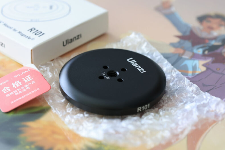 Ulanzi 1/4inch Mount for Magsafe、類似品でこれより安いものは色々ありますが、iPhoneと接する面が柔らかいのと、全体的にバリがなさそうなメーカー、となるとUlanziくらいになっちゃうのかなと思いまして。それでも背品中央のUlanziロゴはセンターが出ておらず、右に1mmほど寄っています。Ulanziくらいの著名メーカーでもまだこのレベルです。合格証の条件にはロゴのズレは入っていないようです。