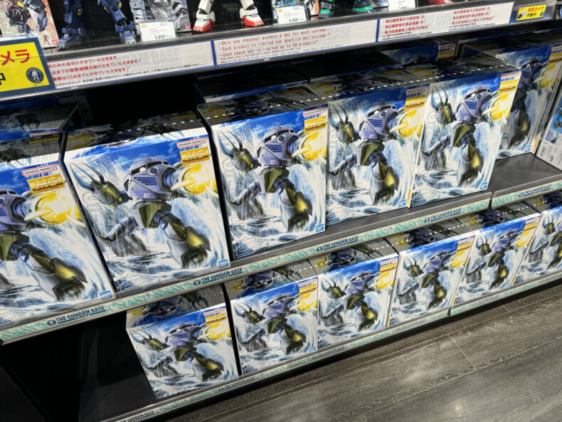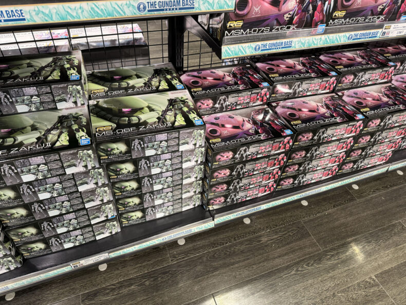 RG 2.0はこの写真の4倍以上の量があり、しかも全然売れてませんでした。冒頭のMGズゴックの方が売れてたくらい。MG Gファイターとか MG リックディアスのときはほぼ全員の買い物カゴにそれらが入っていたのですが、RG 2.0を買う人は10人に1人いるかどうかといったところ。コアなファンは通販で買ったでしょうし、あるいは昨日のうちに手に入れたと言うことでしょう。