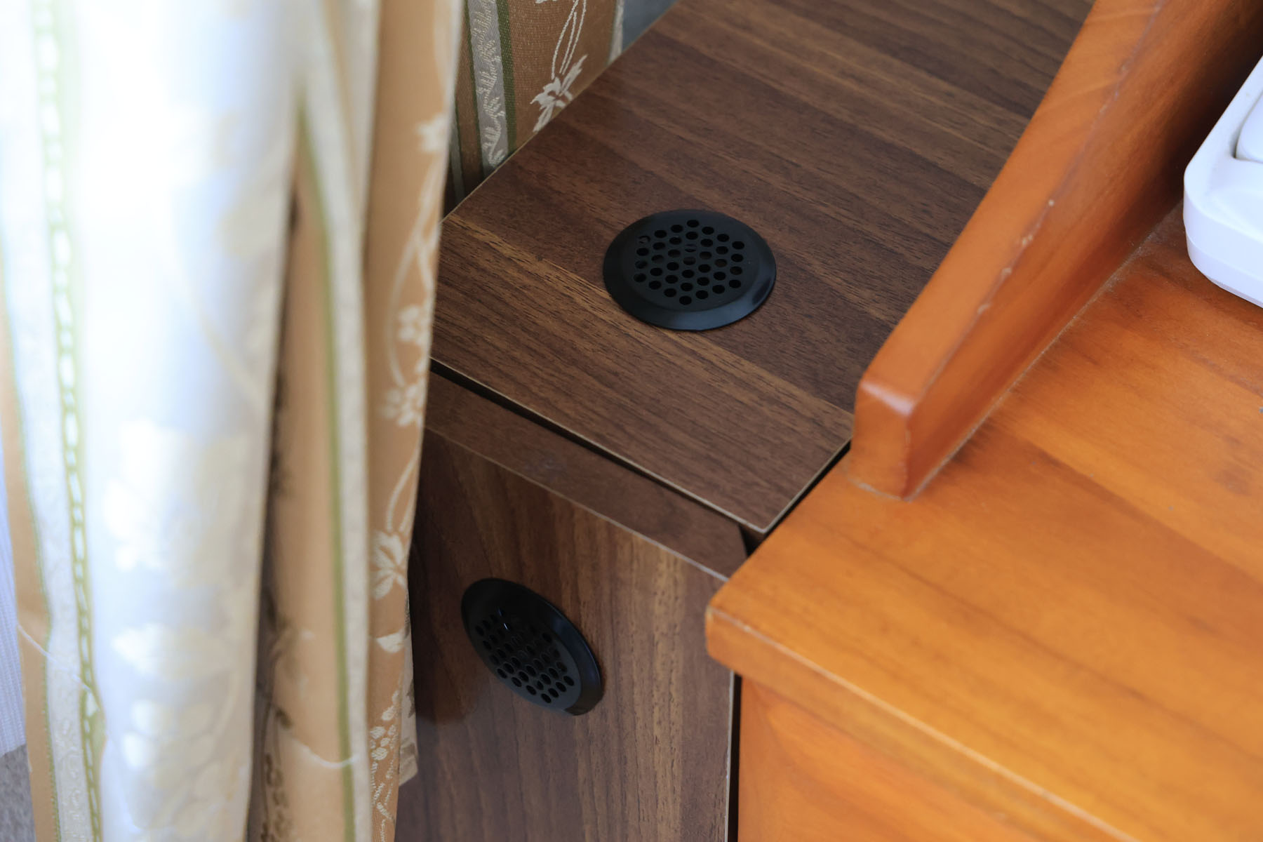 全体としてはこんな感じ。上半分と下半分で気室が分かれているので、それぞれの上端に排熱孔、下端に吸気孔を設けました。天面と側面上部にも1つずつ設けました。合計6箇所ですね。